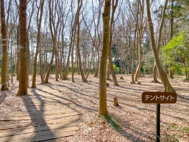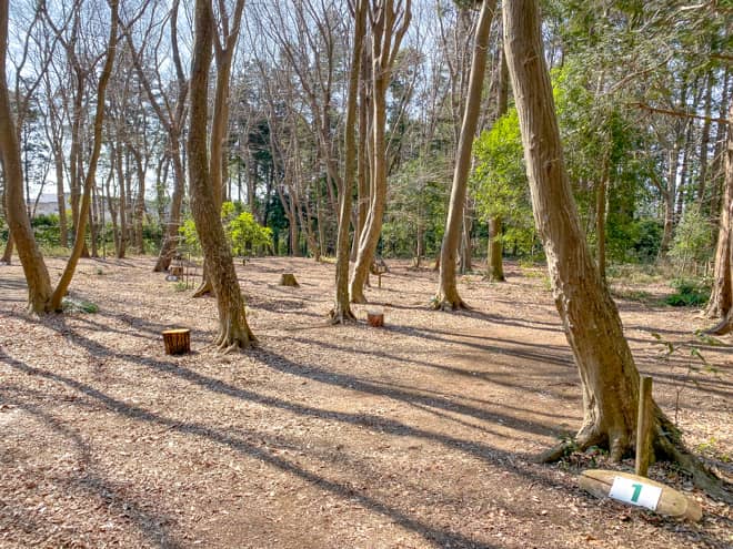いちかわ市民キャンプ場のテントサイトは林間になっていて、1番から20番までサイトが分かれています。1つ1つのサイトはそこまで広くはないですが、夏休み期間以外であれば土日でも空いていることが多く、利用者が少ない日ならある程度は自由に利用できますので、サイトの狭さはそんなに気にならないかと思います。