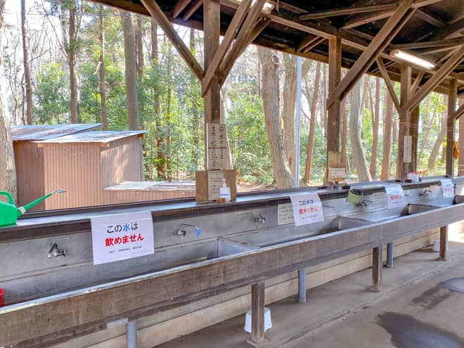 いちかわ市民キャンプ場には綺麗に清掃されている炊事場があります。水道の水は飲めませんので、飲用水や調理用の水はしっかり準備しておきましょう。石鹸や洗剤などはありません。カマドは自由に使用できて、炊事場中央にテーブルも用意されているので調理や食事には困らないと思います。