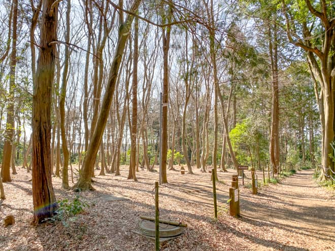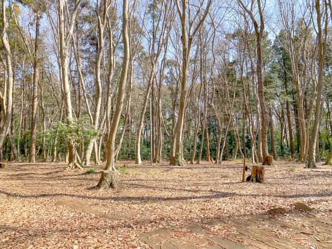 町や道路から近い場所にあるのに、森の中はとても静かで、夏になると青々とした林が広がり、秋は紅葉、冬は枯葉の絨毯が楽しめます。さらに地図上には表示されない森の道を歩いて、5分程度で近くのコンビニまで行けるので、何も無いように見えて利便性はかなり高いです。