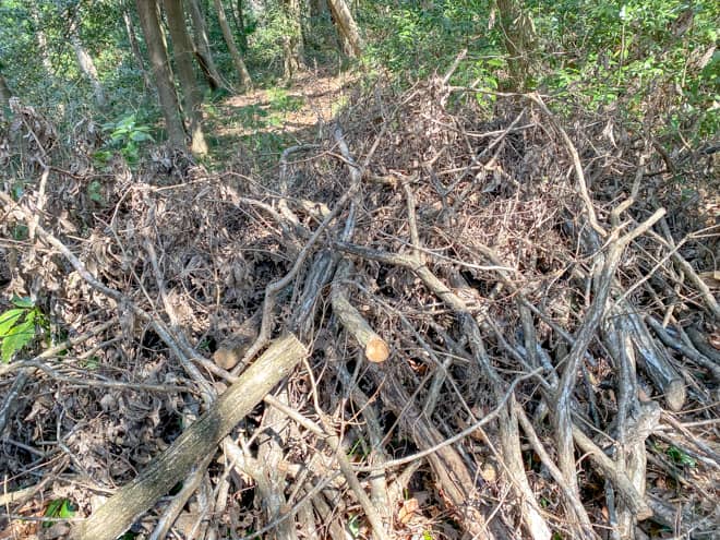 いちかわ市民キャンプ場では薪の販売はしていませんが、キャンプ場内に伐採された枝が落ちているので、そちらを自由に拾って焚き木にして良いとのこと。時期やシーズンによって乾燥具合は変わると思いますが、自由に使って良いというのは焚き火好きにとっては嬉しいポイントです。