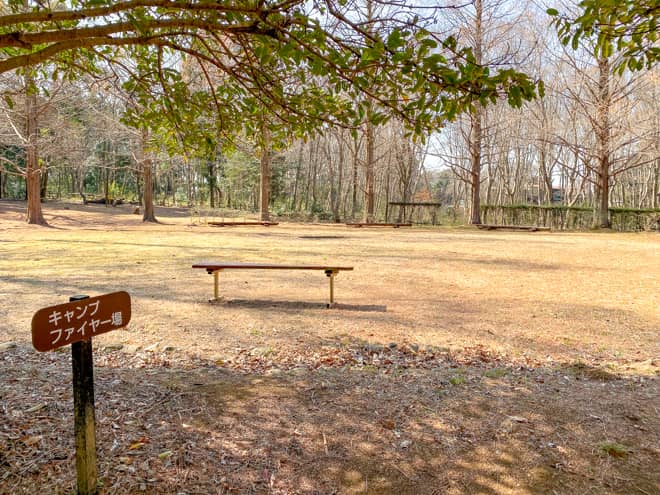 いちかわ市民キャンプ場の中央部分にキャンプファイヤー場が設置されています。こちらを使用する際はキャンプの利用とは別に消防局への届出が必要なので、仮予約の際に別途相談です。個人で利用する人は少ないと思いますが、ファミリーやグループでキャンプをする際には、こちらで大きな焚き火やキャンプファイヤーを組んでみるのも楽しそうですね。