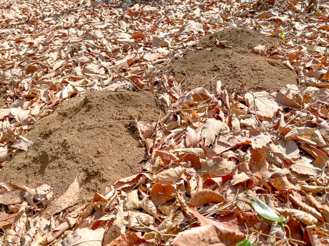 テントサイトに点々とあるモグラの穴