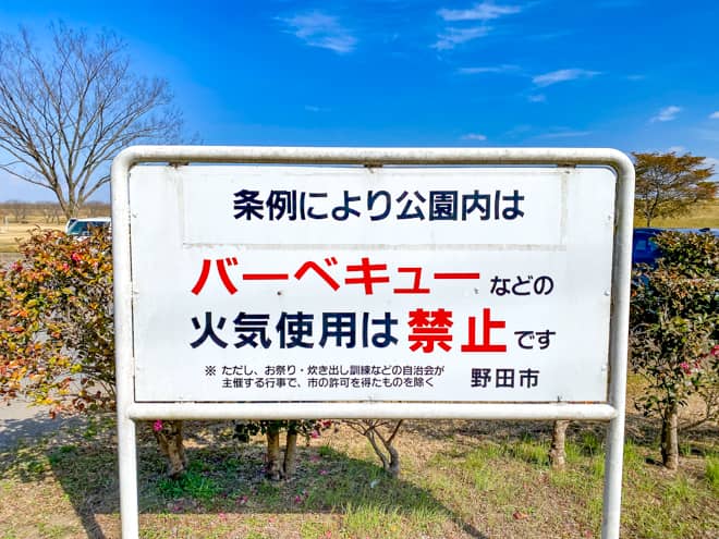 繰り返しとなりますが、野田市スポーツ公園はバーベキューやキャンプの利用を目的とした広場ではありません。過去に炭やゴミを放置したり迷惑行為が多かったことから、条例により公園内の火気使用が禁止となっています。デイキャンプ等で訪れる際はモラルを持った行動をするようにしましょう。