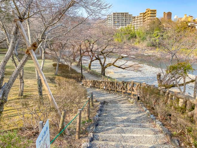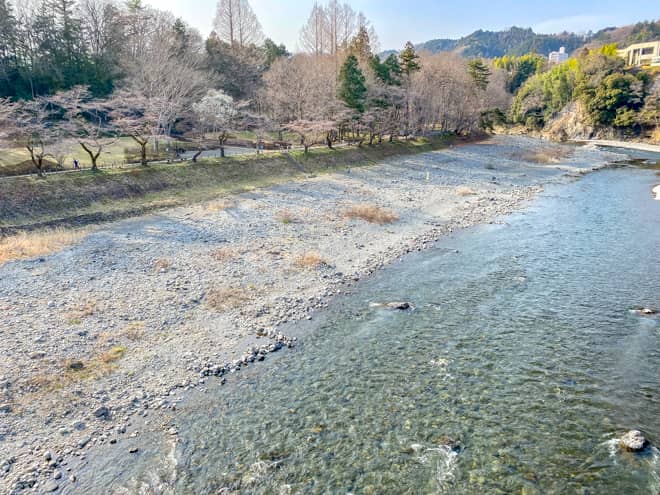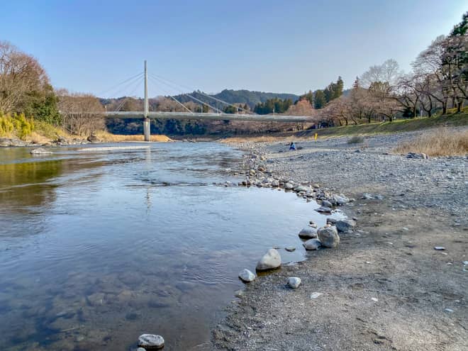 釜の淵公園には桜が植えられており、春の時期にはお花見をしながらデイキャンプも楽しめます。基本的に河川敷は誰でも自由に利用できますが、直火禁止やゴミの持ち帰りなどのルールを必ず守って大切に利用しましょう。