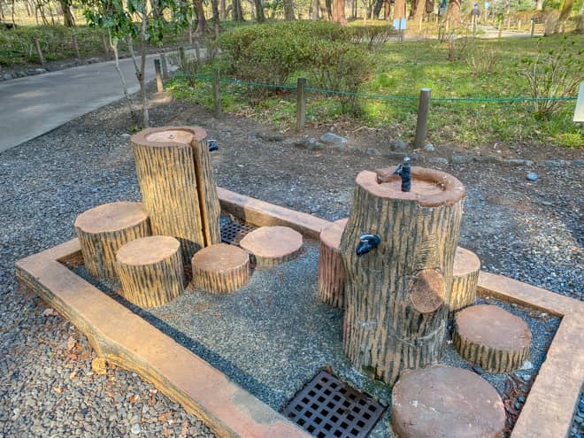 釜の淵公園内に設置された水飲み場です。手洗い用と水飲み用ですので、バーベキューで利用した食器などを洗ったりしないで下さいね。