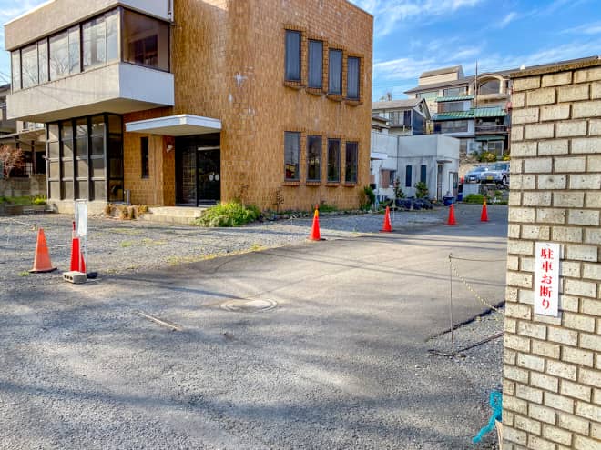 先ほどのガラス工房すみれから離れた場所にある大河原商店の店先も、駐車場として貸し出されているようです。しかし、現地取材した日が平日だったため「休み」の看板が出ていました。飯能河原が賑わう休日には利用できるのかも知れませんが、詳細は不明です。ネット上の口コミでは、利用料金は1,000円とのこと。