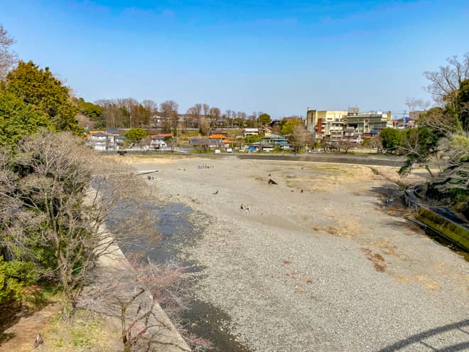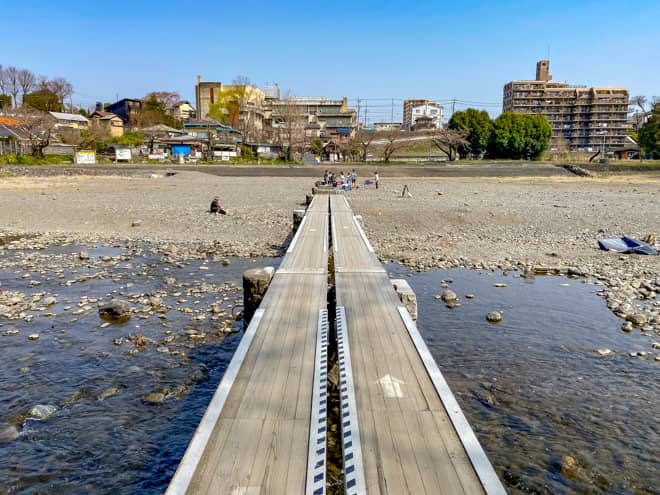 入間川に沿って半月型に広がる飯能河原は、火気使用が可能なエリアと、火気禁止の観光エリアに区分けされています。木製の橋から下流側(写真の右側)が火気使用可能エリアとなるので、今回はそちらを中心にご紹介します。
