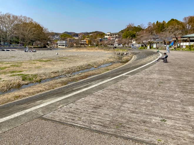 飯能河原には河川に沿ってカーブするようにウッドデッキ(ステージ広場)が設置されています。こちらでは火気の使用は出来ませんが、チェアを置いて読書を楽しむ人の姿も見られました。気持ちの良い陽気の日には、こちらでゆっくり過ごすのも良さそうですね。