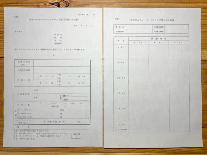 肝心の予約方法も煩雑で、事前に「キャンプ場利用申請書」と「利用計画書」を公式サイトからダウンロードして必要事項を記入し、所沢市役所公園課へ直接持参して申請しなければいけません。