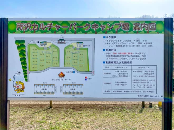 埼玉県内で人口数第4位を誇る所沢市に、無料で使えて設備も整っているファミリーキャンプにおすすめの所沢カルチャーパークキャンプ場があります。