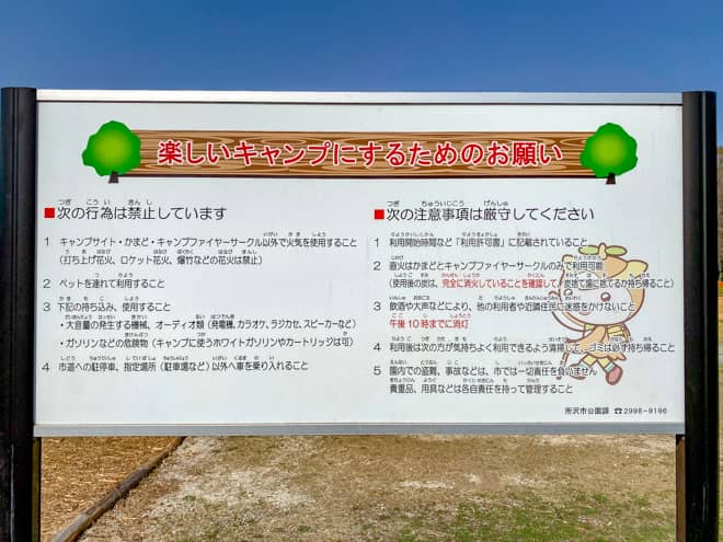 所沢カルチャーパークを利用するには、宿泊キャンプであれば1ヵ月前に申請が必要で、日帰りキャンプでも1週間前までに予約をしなければいけません。人気の高規格キャンプ場であれば同じような条件のキャンプ場もありますが、やはりこの事前予約というのは一般利用者にとっては負担となりそうです。しかし、それ以上に気になってしまうのが以下の2項目です。