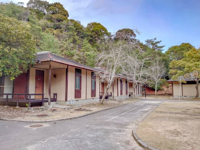 定員14人用×6棟、24人用×7棟の団体用ケビン。ちょっとした住宅街の様になっています。合宿や研修で使われる様です。こちらも外観は古いですが、随時改装されているそうです。