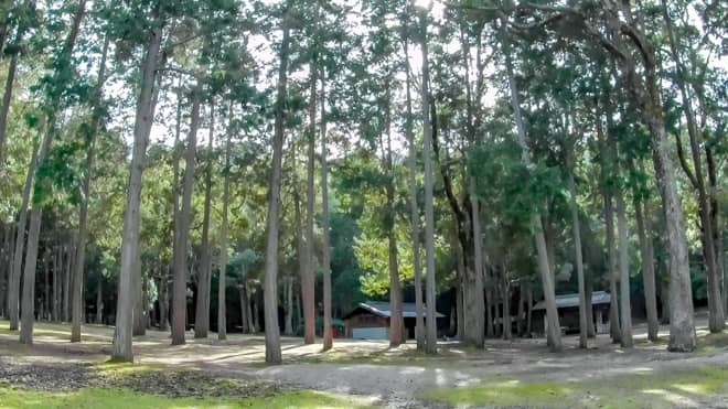 山側へ進んだ所にあるキャンプサイトは、落ち着いた林間サイトで雰囲気がとても良いです。まさに癒しの空間。木々に囲まれているのでキャンプサイトに入ると真夏でも少し温度が下がって過ごしやすいです。区画の無いフリーサイトなので、その日の気分で好きな場所へテントを張る事ができるのも嬉しいポイント。