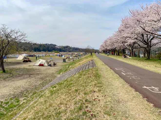青梅市内の多摩川沿いに、無料でキャンプが可能な河川敷「柚木の川原(山崎川原)」があります。さらさらの白砂が特徴的な川原で、バーベキューや釣り客だけでなく、多摩川を下るラフティングの終着点にもなっており、時期や時間によってラフティング客が上陸してくることもありますが、それ以外はとても静かに過ごせる場所です。簡易トイレは近くに設置されていますが水道は無いので、利用する際には飲料用や調理用の水の確保をしておきましょう。