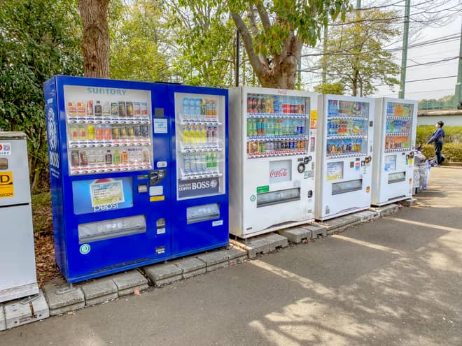 郷土の森公園の野球場駐車場には自動販売機が設置されています。飲み物はこちらで用意できます。