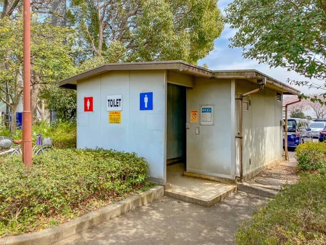 公衆トイレは駐車場の隣に設置されています。中は和式で、なかなかの汚れ具合でした。無料で利用できる施設で、土日など利用者が殺到すると清掃が行き届かない時も多いでしょう。トイレットペーパーも持参しておいた方が安心です。