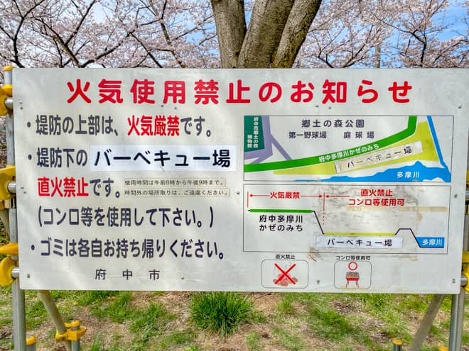 東京の中心に位置する府中市には、野球場やテニスコート、博物館、市民プールなど多くの施設が複合された「府中市郷土の森公園」が設置されており、河川敷にある無料のバーベキュー場はデイキャンプを楽しみたい人たちに人気のスポットとなっています。
