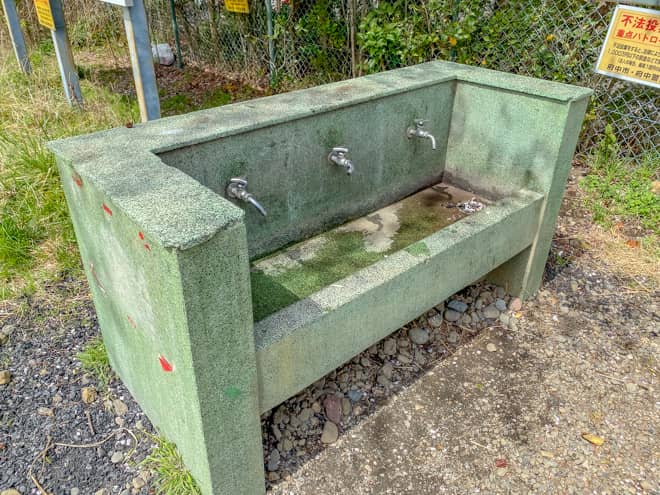 郷土の森公園バーベキュー場の入口と、野球場隣の2ヶ所に水道が設置されています。洗剤やたわし、スポンジなどは置かれておらず、手洗い兼水飲み場という雰囲気ですので、油汚れなどの洗い物はなるべく自宅で行うようにしましょう。