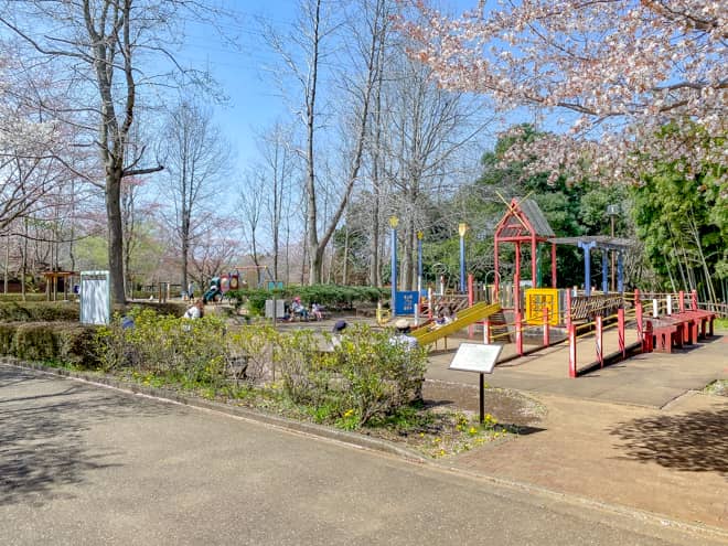 キャンプ場の近くには遊具が置かれた広場もあります。お昼ご飯を一緒に作って食べたら、遊具で遊んだり、公園内を散策したりするのも良いですね。公園内には人工池も有り、子供を自然の中で遊ばせる良い機会だと思います。