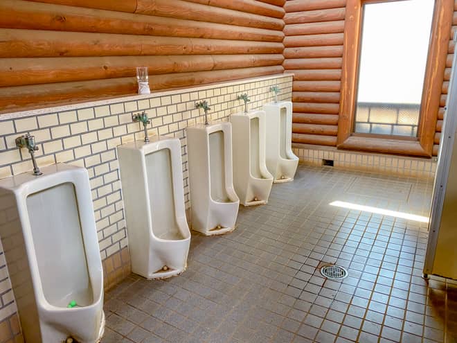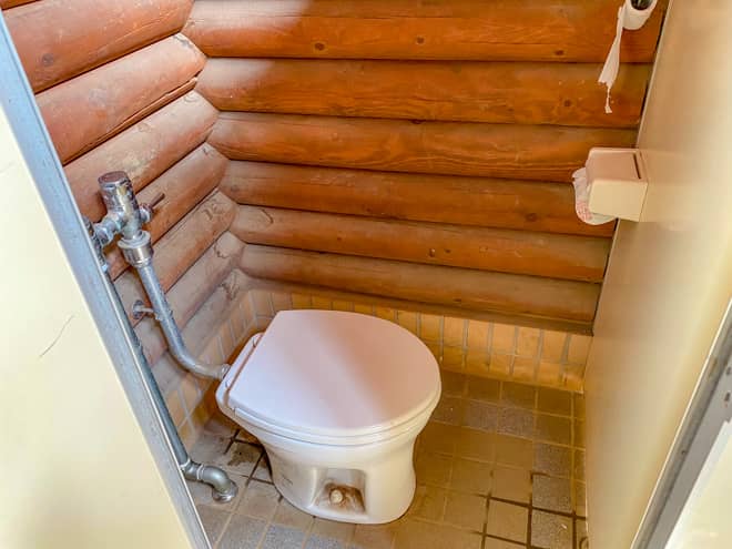 トイレは管理棟の裏側にあります。掃除が行き届いていて綺麗に保たれていました。トイレットペーパーも設置されています。