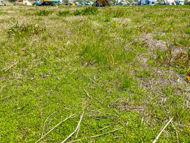 利根川ゆうゆう公園デイキャンプ広場のフィールドは、背の高い雑草に覆われた草地のエリアとなっています。市の委託による草刈りも定期的にされていますが、いつでもどこでも完璧な状態という訳ではありません。テント設営の際にはある程度、整えられた場所を選んだ方が良さそうです。