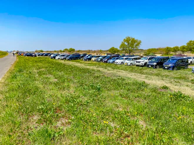 利根川ゆうゆう公園のデイキャンプ広場は無料でキャンプが楽しめる場所として近隣キャンパーから親しまれており、土日ともなると県外からも多くの利用者が訪れる人気スポットです。利用者の数に比べて駐車場が狭いので、指定エリアからはみ出して駐車されているところも多く見られます。利用するなら、なるべく午前中には到着できるように計画をしておいた方が良いでしょう。