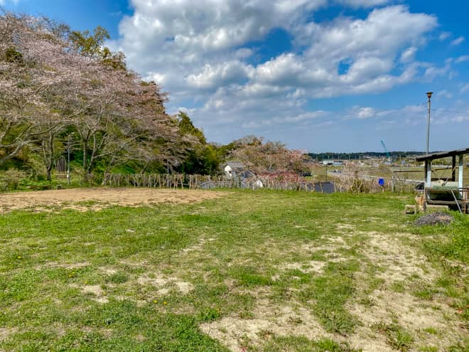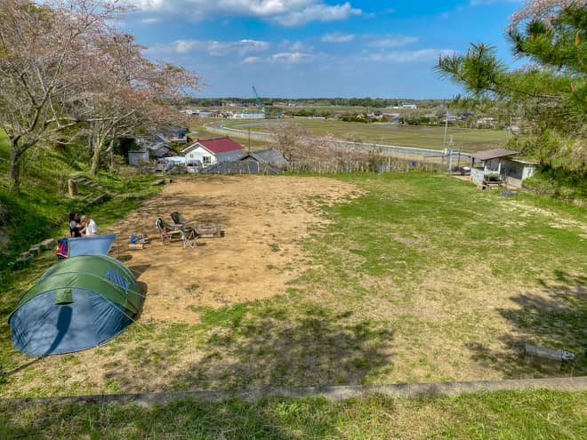 広場の周囲は丘に囲われていますが、北向きの一方向が開けていて解放感は得られます。方角的には九十九里浜方面となりますが、残念ながらキャンプサイトからは海は見えません。夜は明かりが少なく、流星群の時期には流れ星を見ることもできるそうです。