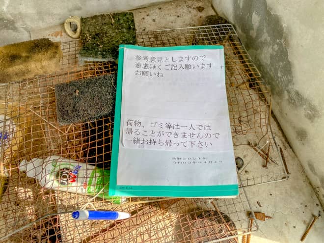 炊事場の片隅にご意見を表明できるノートが置かれていました。キャンプ場で過ごした思い出などをぜひ記録して帰りましょう。