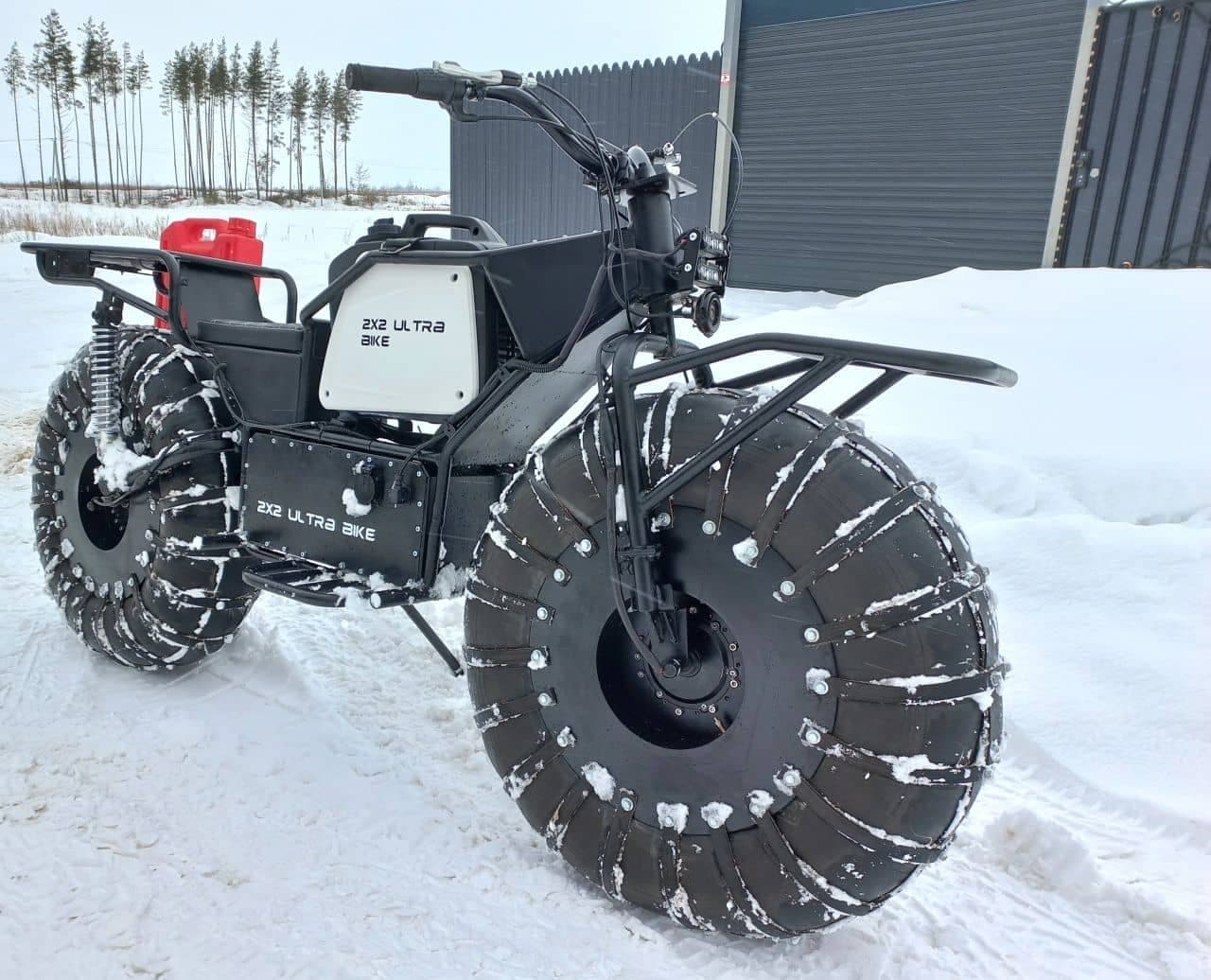 雪深い地域や非舗装道路での走行にフォーカスしてデザインされた電動バイク。前後輪に1,000Wのハブモーターが採用されていて、どちらかがスタックしてももう1輪で脱出可能な仕様が与えられている。