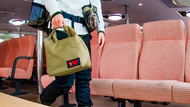 徒歩キャンプの場合はクーラーバックを手持ちするのが邪魔に感じるかもしれませんが、寄り道をしてちょっとした買い物をしてもバックパックを降ろす事なく収納できるのがお気に入りで愛用しています。