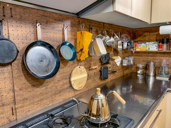 キッキン関係の調理器具やマグカップ、トレーやカトラリーも、飾ろうと思えば飾ることができます。