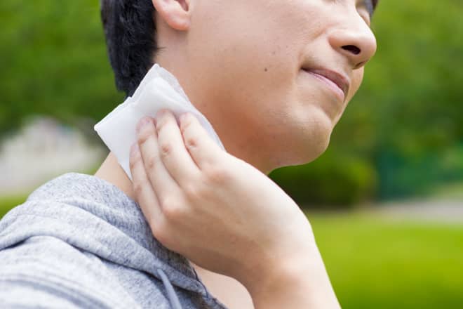 暑がりな僕は、普段からボディーシートやフェイスシートなどの肌を清潔にする物を持ち歩く事が多いです。もちろんそれは汗を拭く事が前提ですが、シートを使った後は冷感剤により、涼しく感じられます。