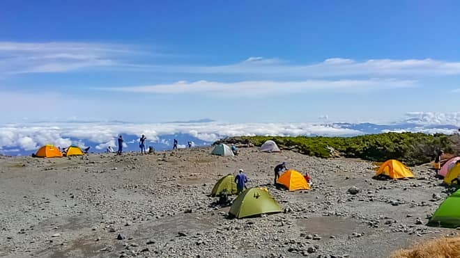 山頂直下の稜線上にテント場があるため、眺望が抜群です!頑張って登った後、ゆっくり過ごすテント場からの景色がいいとテンションがあがりませんか?風が強い日はハイマツのそばに設営する必要がありますが、風がない日は思いっきり稜線上に張っちゃいましょう!