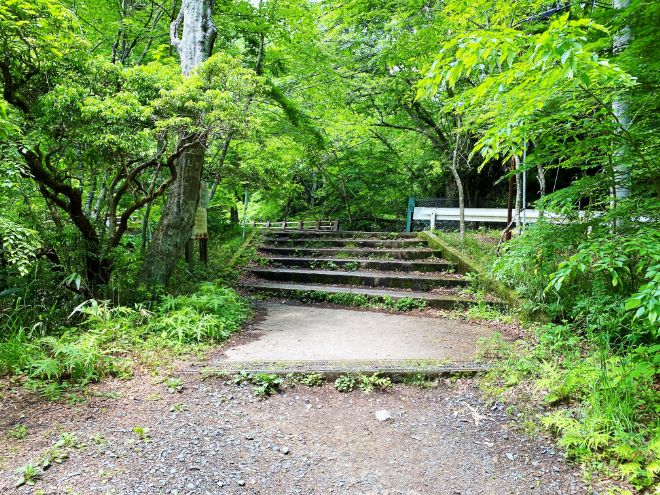 駐車場からキャンプ場内へ移動する際、道路から階段がありますのでキャリーカート等を使っていても大荷物は避けた方が良いでしょう。場内にも舗装された箇所はありませんので、なるべくキャンプ道具は最小限に絞って行くことをおすすめします。