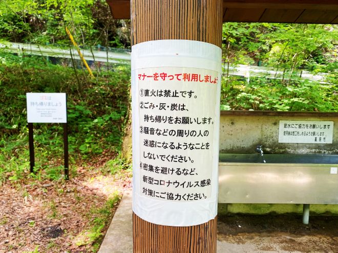 小滝沢キャンプ場には無料とは思えないほど綺麗なトイレが設置されています。こちらは駐車場の奥に設置されており、登山者や観光客も兼用の公衆トイレとなっていますが、こんなにも綺麗なトイレが設置されている無料キャンプ場は貴重です。小滝沢キャンプ場のおすすめポイントを挙げるなら、確実にこのトイレも含まれます。大切に使いましょう。