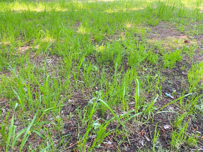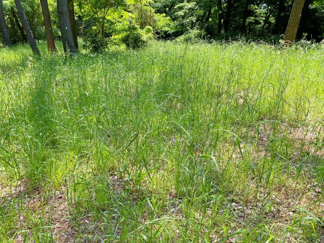 角渕キャンプ場の地面の様子はエリア毎に大きく異なります。AサイトやBサイトは背の低い草や土のエリアとなっていますが、CサイトやDサイトは手入れがされていないエリアも多く、膝下ぐらいまで高さのある草で覆われているスペースもあります。