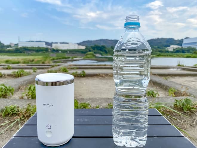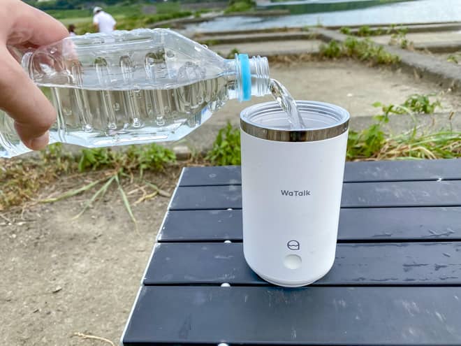 重量もわずか273gと缶ジュース1本分で、水質の測定が終わって問題が無ければ、そのままマグカップとして利用が可能。キャンプや登山などで、湧き水や川の水を使わなければいけないシーンで大活躍してくれるということなので実際に試してみます。