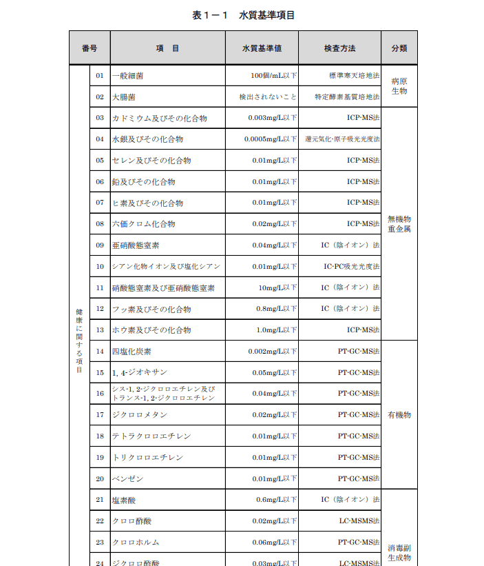 水道局はこうした基準を設けて水道水の安全を保っているようです