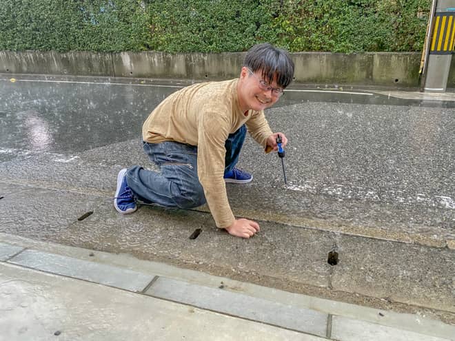 水面に緑色の藻みたいなのがめっちゃ浮いていたので、最初からテンションが落ちて寝起きのような顔になっていますが、もし東京で大地震が起こってライフラインが停止してしまったら、こうした川の水さえも飲まなければいけなくなってしまうかも知れません。頑張りましょう。