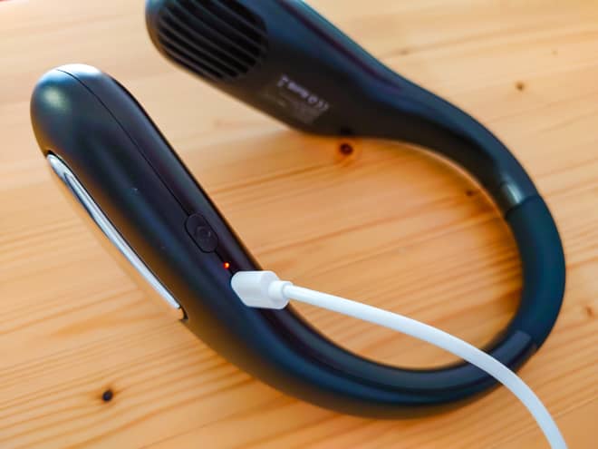 ネッククーラーやネックファンと呼ばれる製品には様々な種類がありますが、筆者が使用しているのは冷却プレートが付いていない冷風のみのネックファンです。