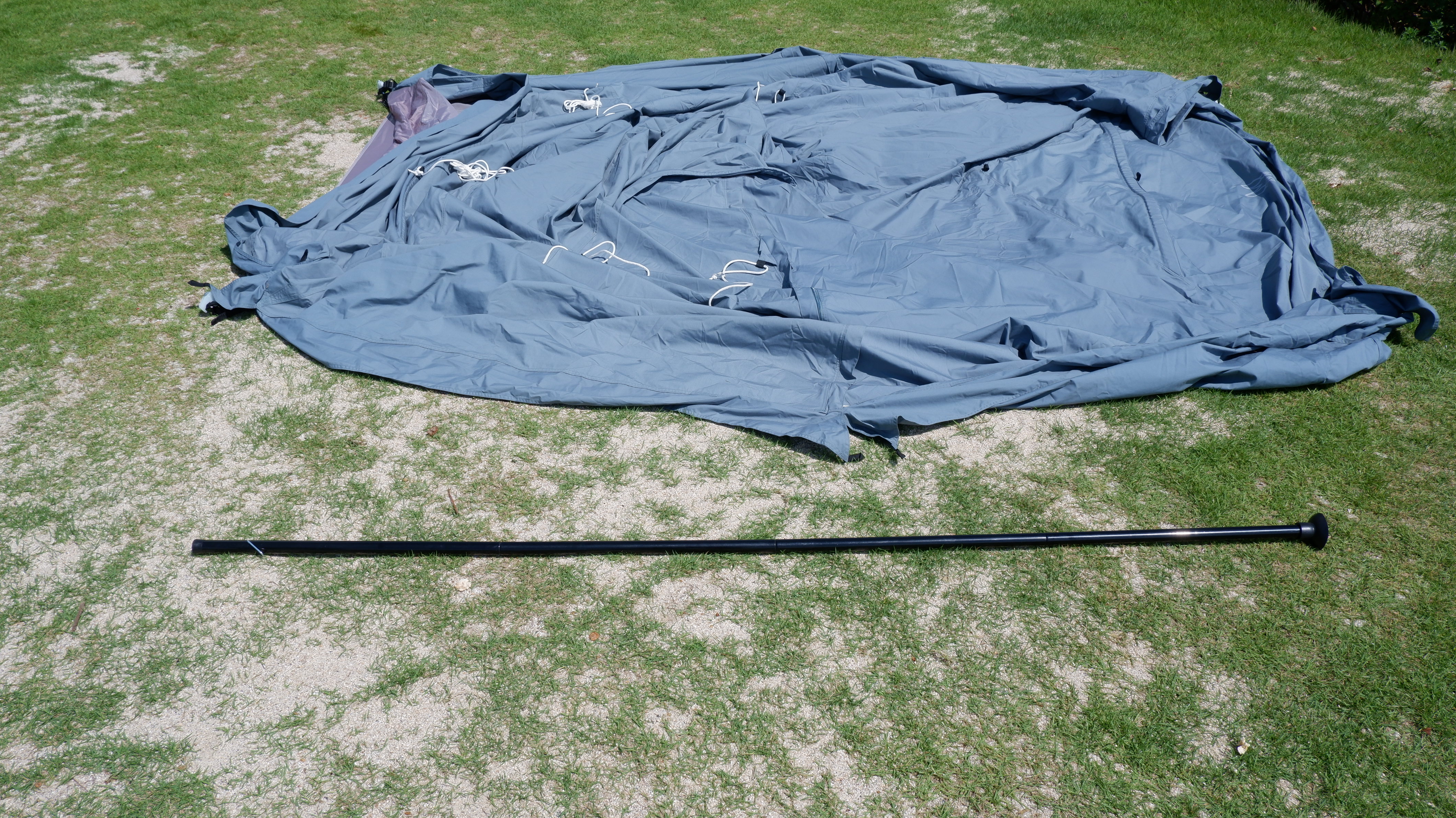 次にポールを中から中心に差し込みます。長さはフライシートの同じくらいでした。