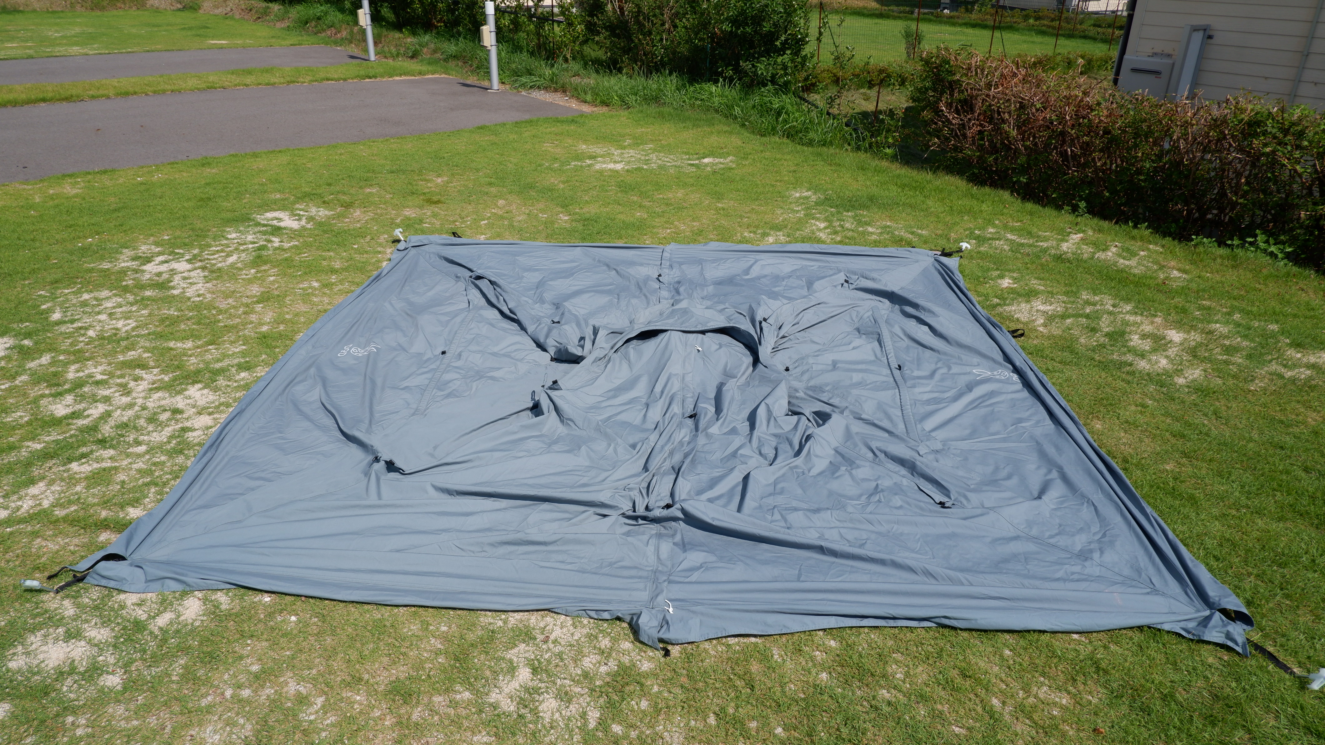 まずはグランドシートとその上にフライシートを広げて重ねる。