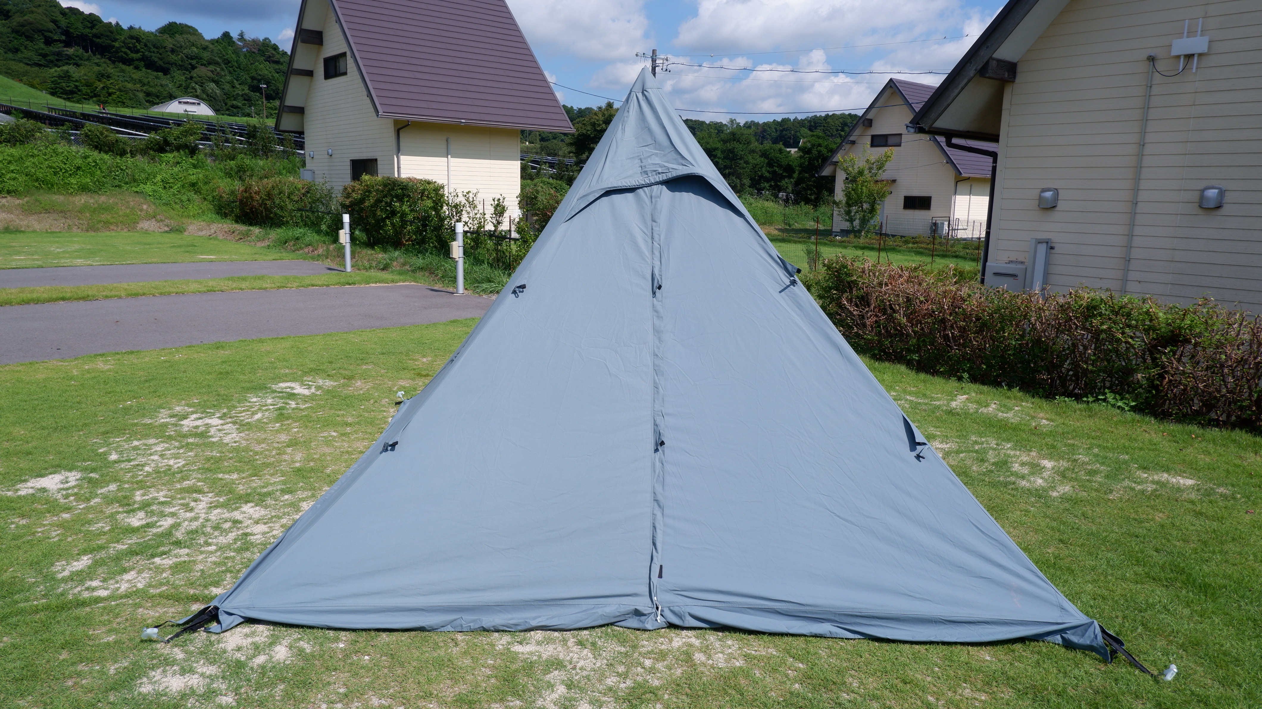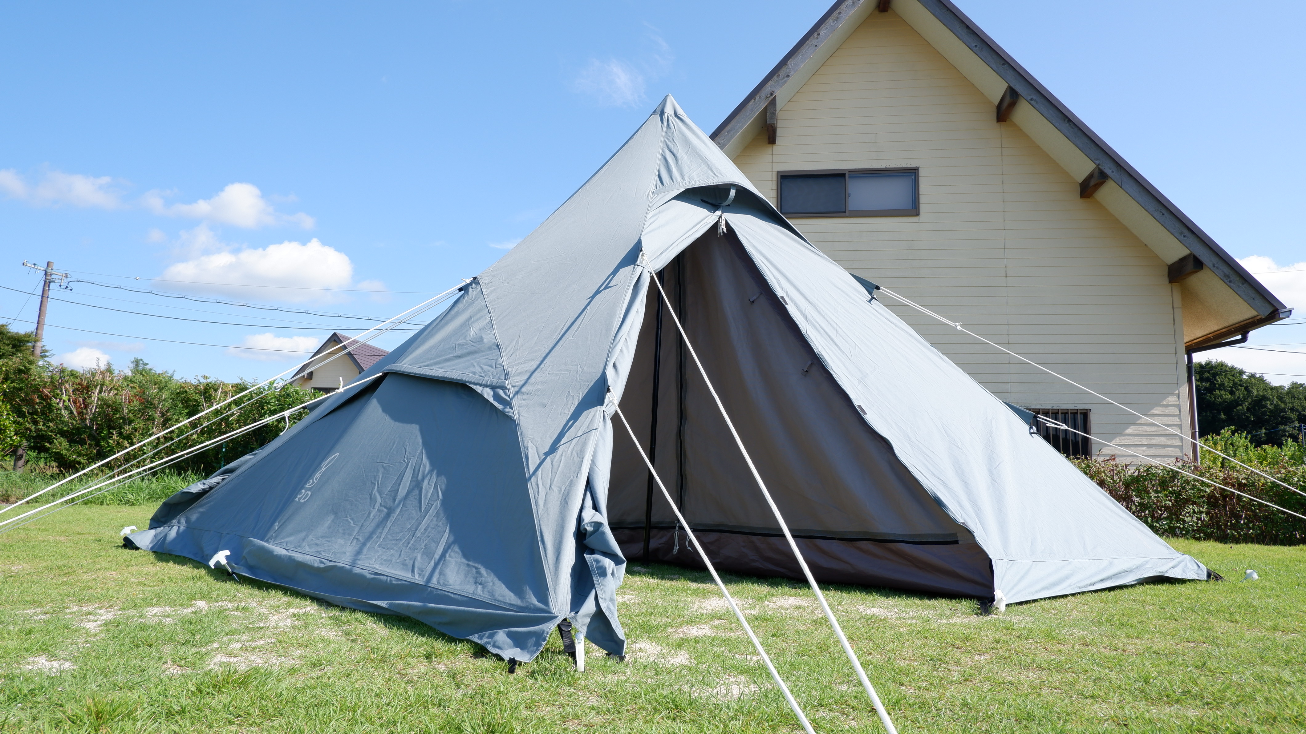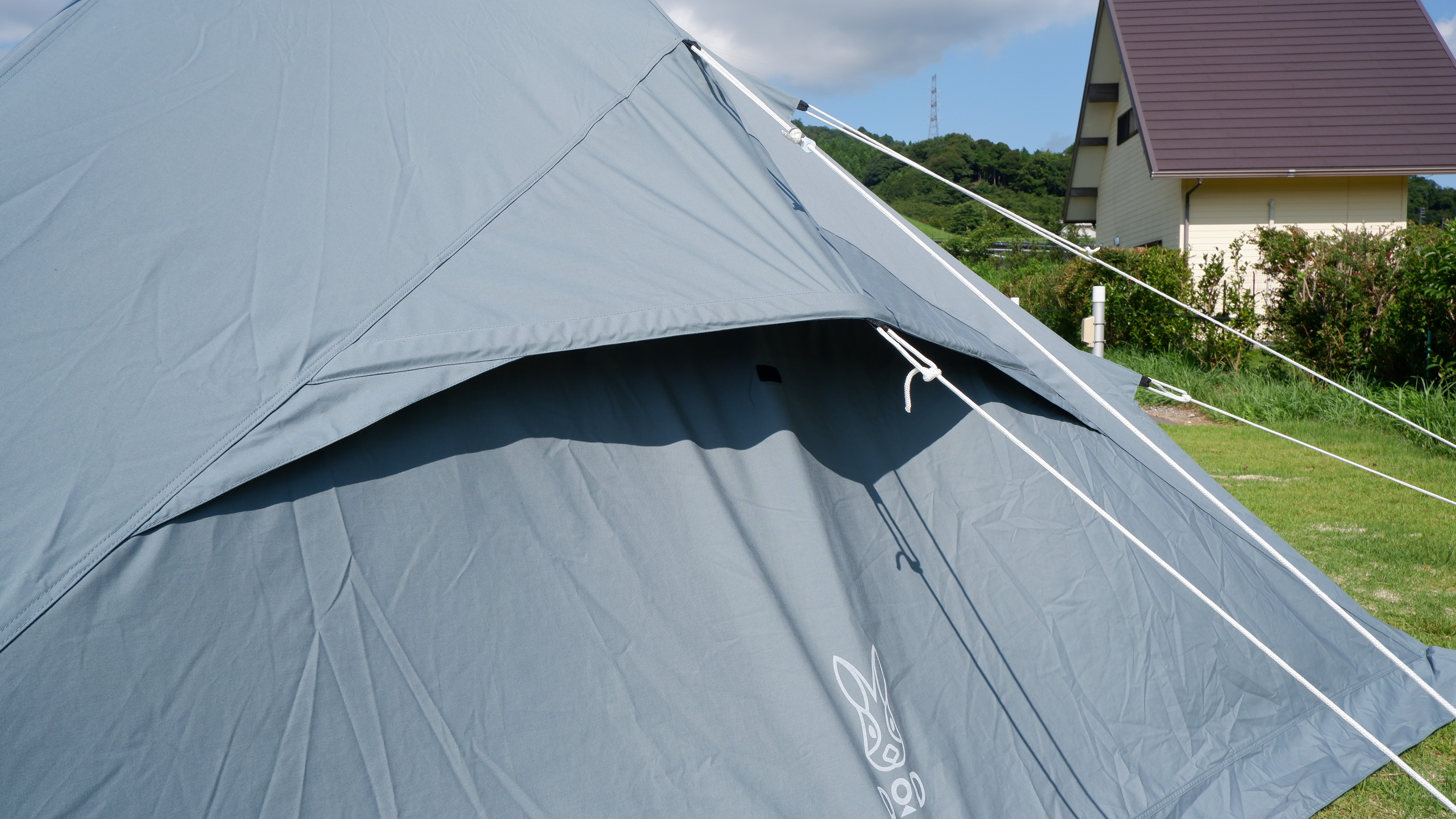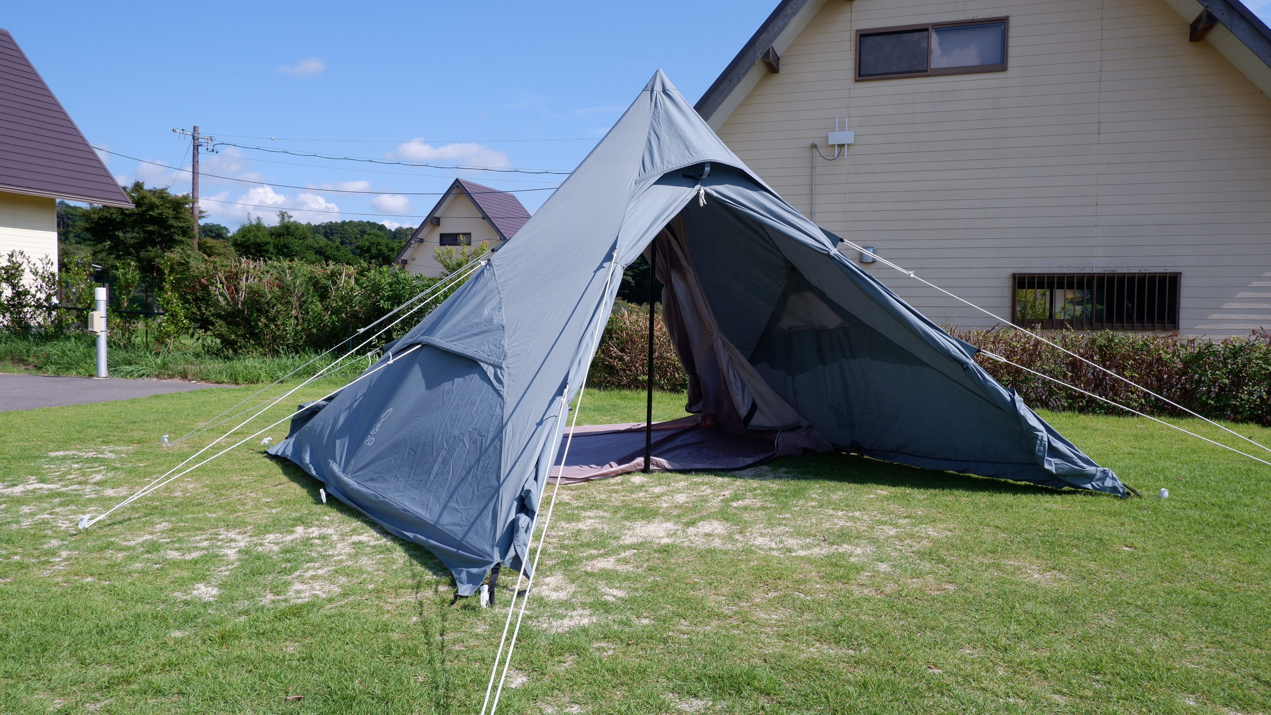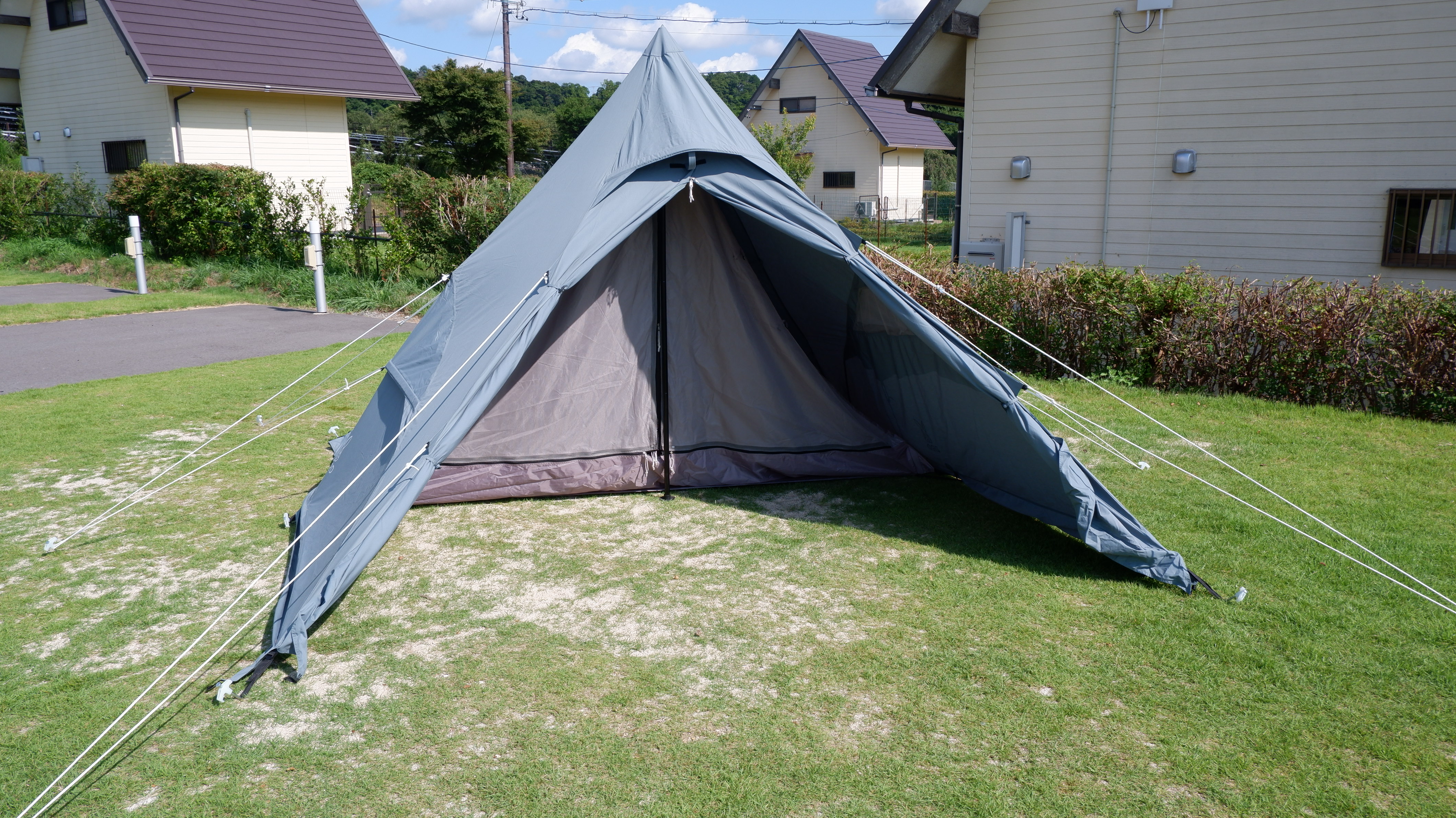 取り付けされているロープをそれぞれペグダウンするといよいよテントに完成。