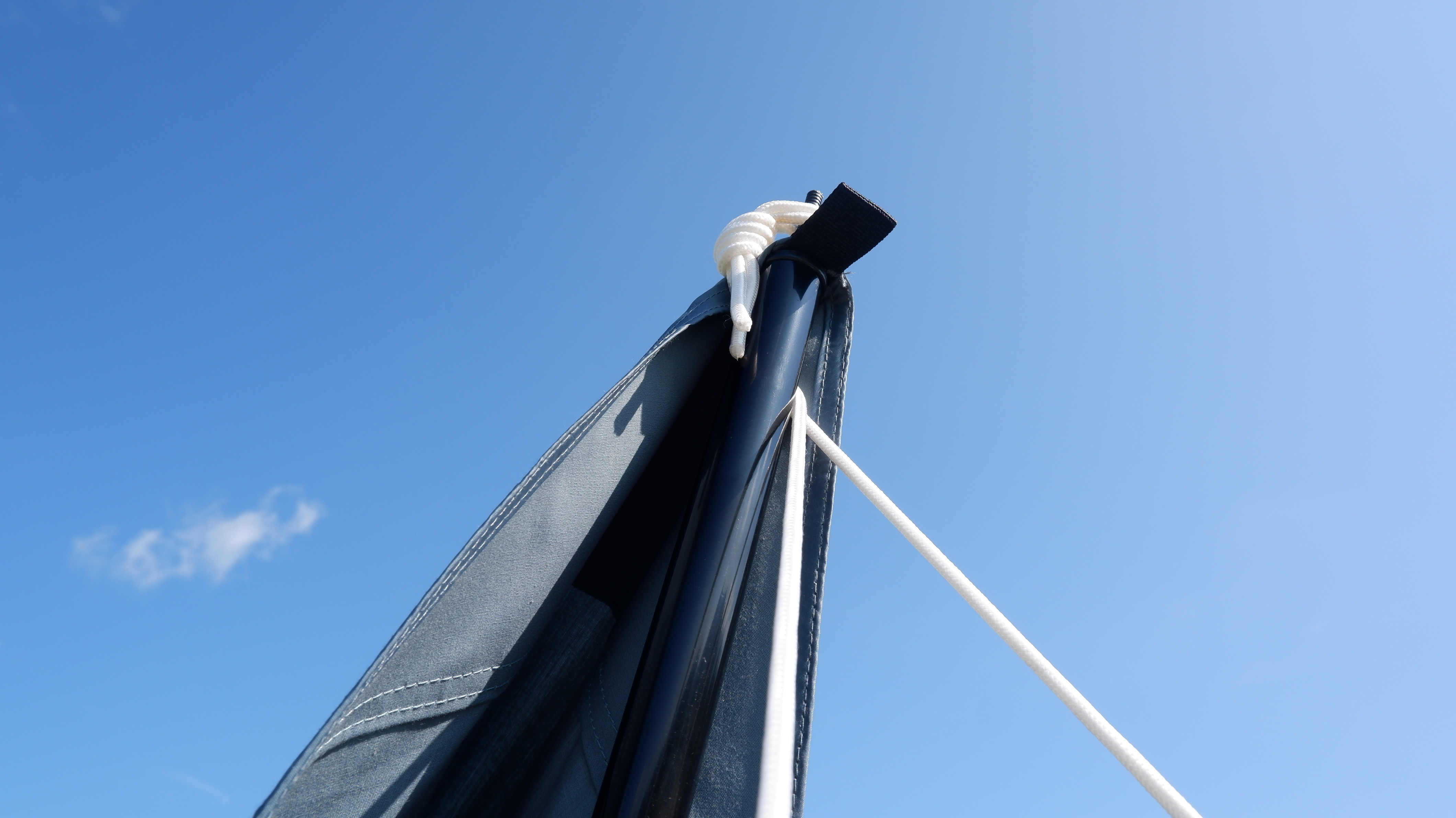 その後にグロメットに通したポールの先端に付属品のロープをそれぞれ輪っかを作りポールに通す。