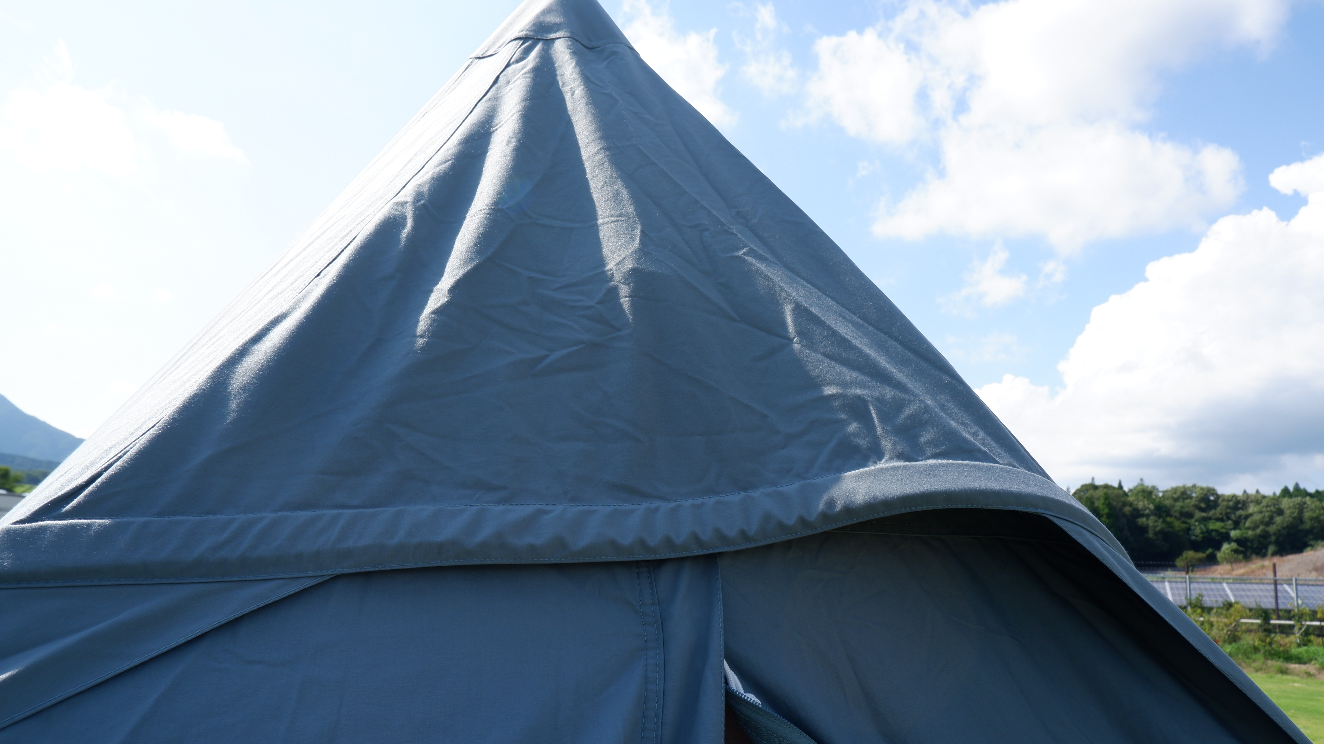 [ポリコットン(ポリエステルとコットンの混紡生地)素材に憧れるけどちゃんと扱えるかちょっと不安。でもいつかポリコットン素材のタープで快適なキャンプがしたい!そんな思いを実現させる、扱いやすさにこだわったTC素材のヘキサタープ]というのが名前の由来となっているらしい。(※DOD公式ページ参照:https://www.dod.camp/product/tt5_631_kh/)