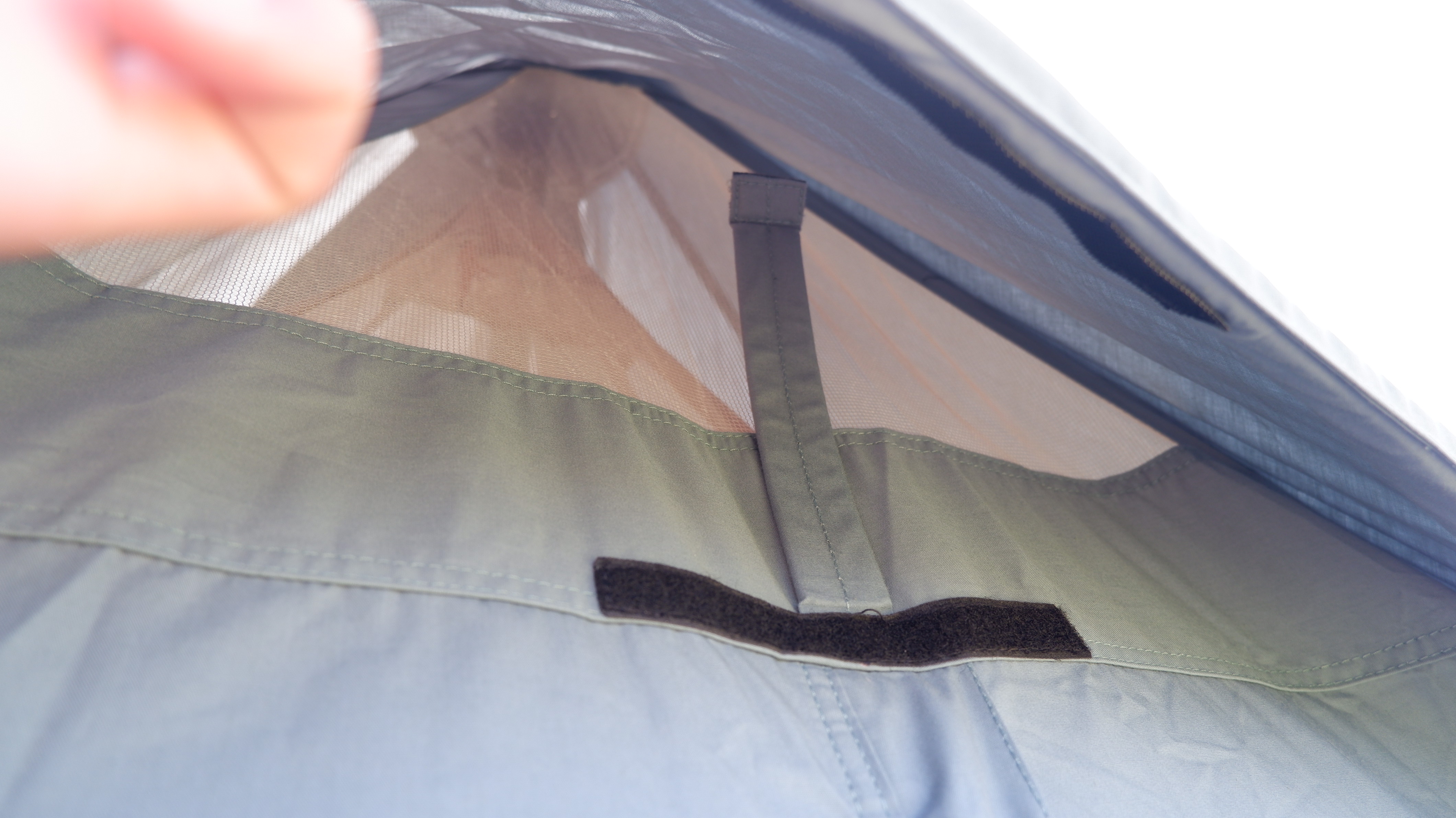 続いてインナーテントは入り口が通常のシートとメッシュ生地の二枚構造。メッシュ生地のみ閉じれば、虫の侵入を防ぎながら換気ができる。二枚とも閉じればプライベート空間ができあがる。