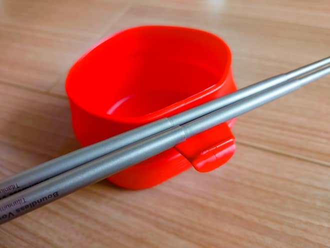 そして地べたスタイルが多い筆者は箸の置き場に困る事が多いのですが、この取っ手部分がちょうど良い箸置き場になる事も発見!感動しかありません…笑。