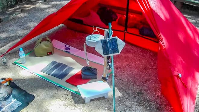 満充電であれば強で10時間、弱で15時間使用可能なので一泊のキャンプには充分。太陽さえあればいつでも充電できるので連泊でも安心して使用できます。