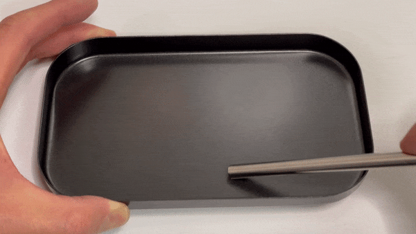ピラフを食べる時に使った金属製のスプーンでは全然大丈夫でしたが、テーブルの上を擦る様に移動していたら細かな傷が付いていました。