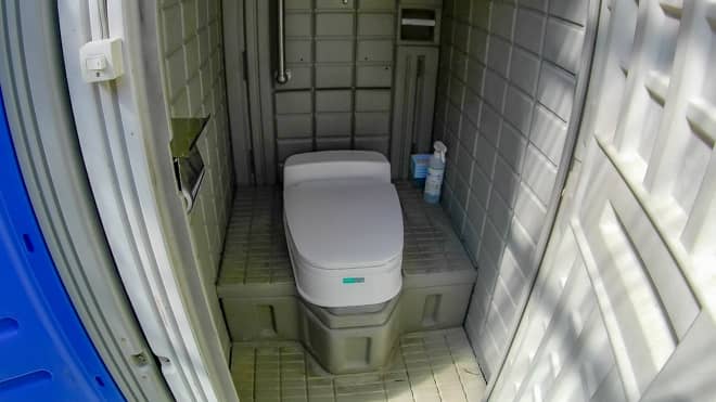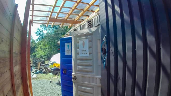 管理棟横に設置されています。仮設トイレですが、綺麗に清掃されているので気持ち良く使用できます。